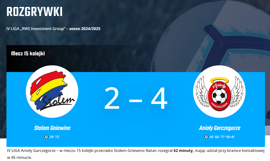 IV LIGA POMORSKA / Stolem Gniewino – Anioły Garczegorze utworzone przez NJ11 | 2024-11-10 | Historia rozgrywek IV LIGA POMORSKA / Anioły Garczegorze sezon 2024/2025